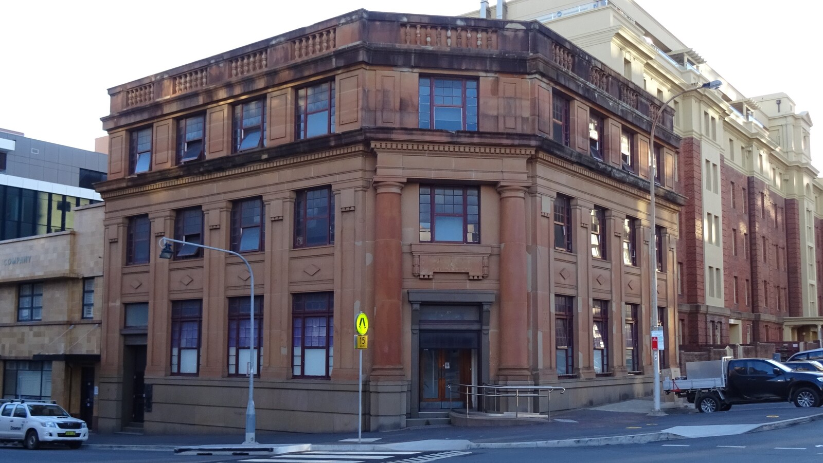 Description: 35-37 Watt St, Newcastle. 3 storey Classic Revival Building. Constructed in 1920s.