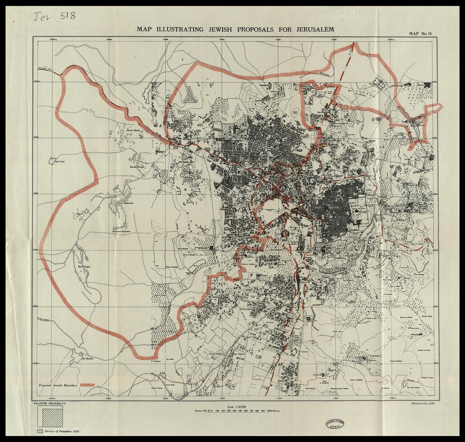 Description: Jewish plan of partition for Jerusalem, as presented to the Woodhead Commission, 1938.