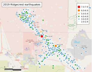 Description: Map of 2019 Ridgecrest earthquakes