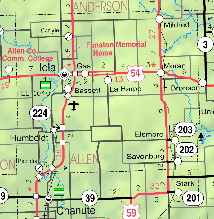 Description: This map of Allen County, Kansas, USA, is copied at a resolution of 300 pixels/inch from the original PDF file.