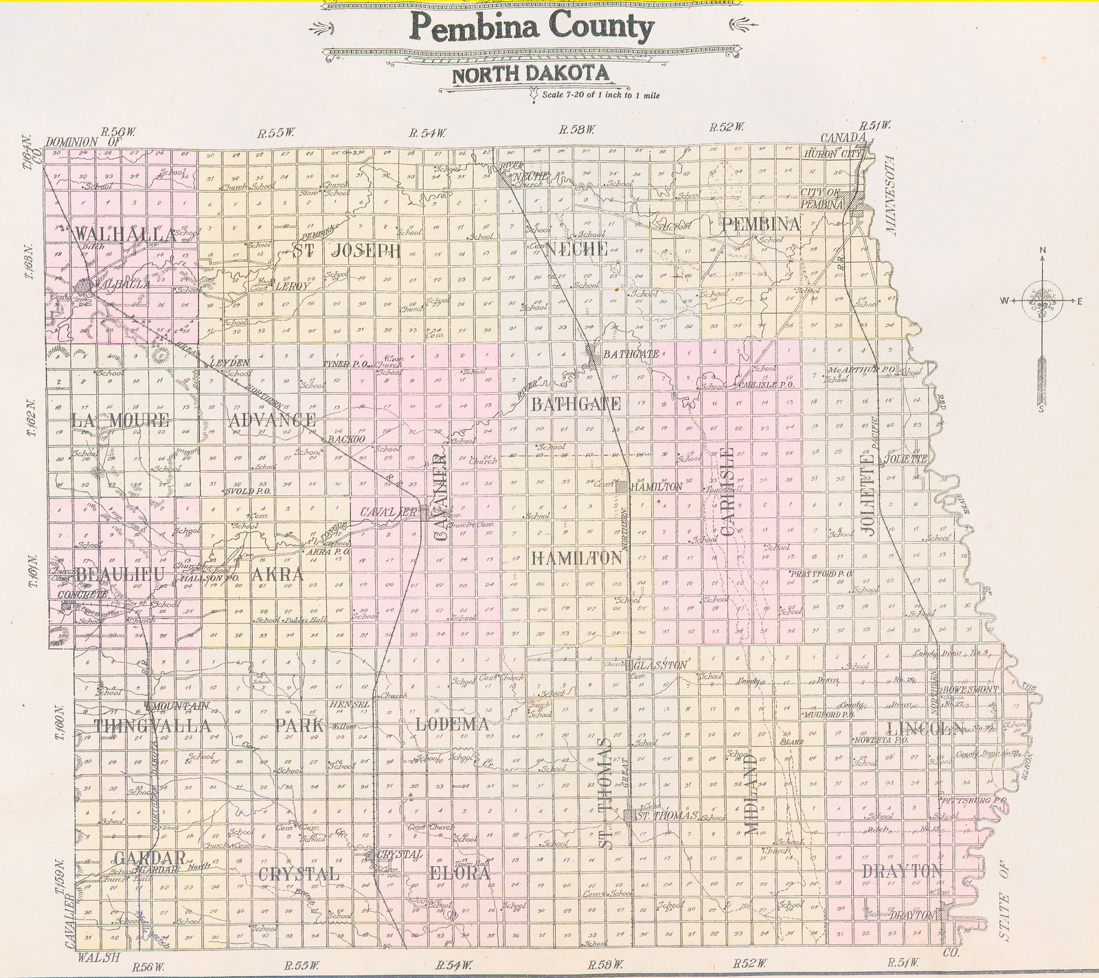 Description: Outline map of Pembina County, North Dakota. First published in 1909 by Alden Publishing Co. in "Standard Atlas of Pembina County, North Dakota."