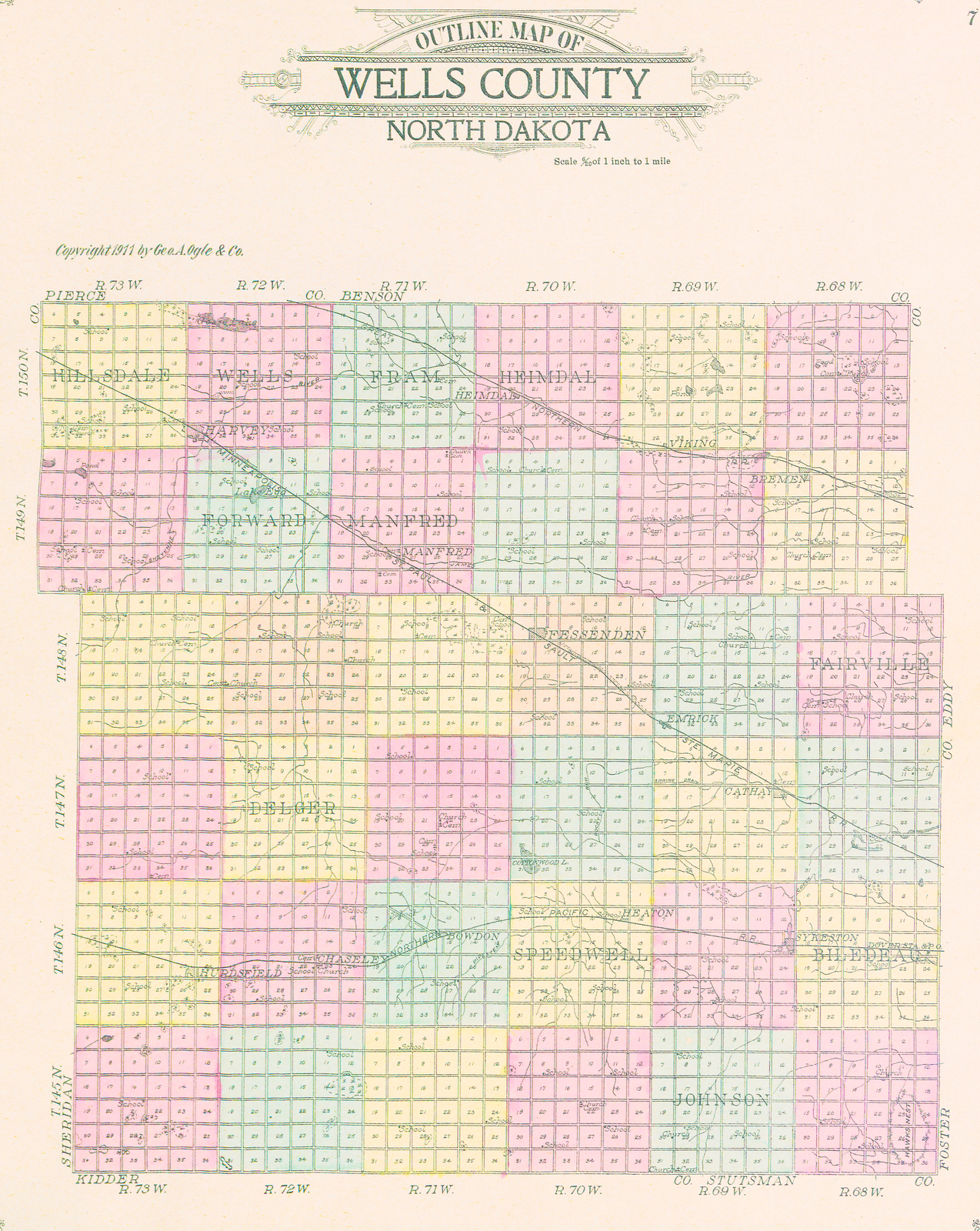 Description: Outline map of Wells County, North Dakota. First published in 1911 by Geo. A. Ogle & Co. in "Standard Atlas of Wells County, North Dakota."