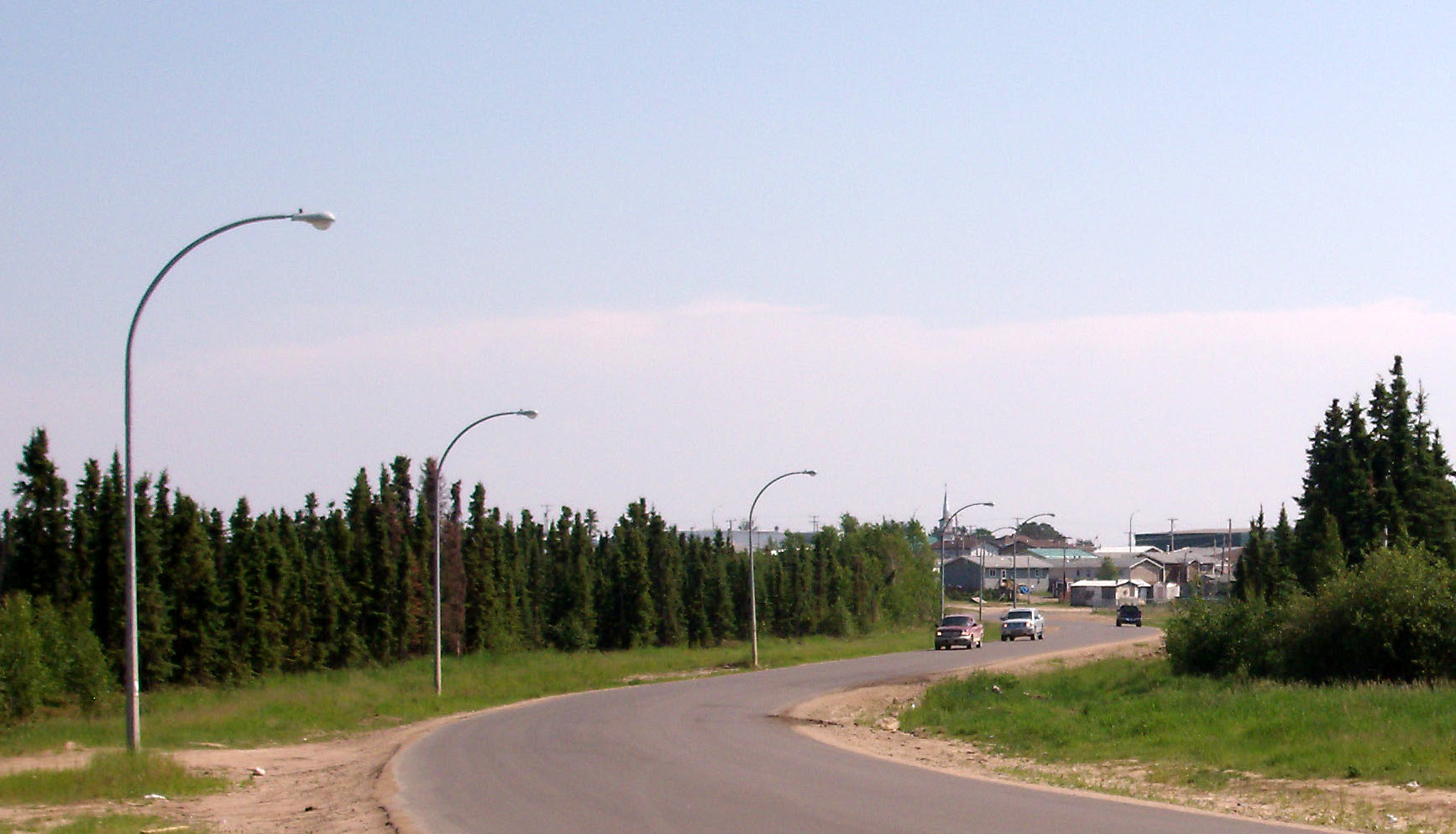 Description: Marie Street in La Loche, Saskatchewan showing central area in the distance.