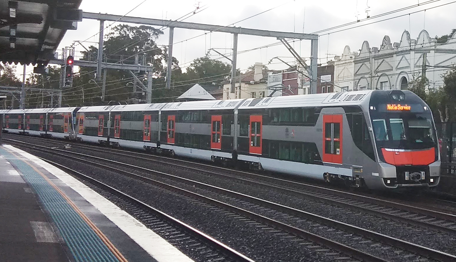 Description: Mariyung D sets D16 and D116 passing Summer Hill station bound for Central on a test run from Newcastle
