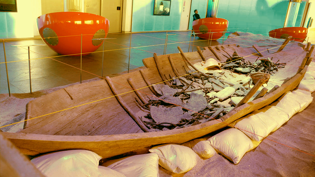 Description: Reconstrucción del pecio fenicio Mazarrón II en el Museo Nacional de Arqueología Subacuática de Cartagena (ARQUA).