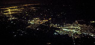 Description: Night aerial view of Merced, Atwater, Livingston, Turlock, Modesto, and Manteca, California