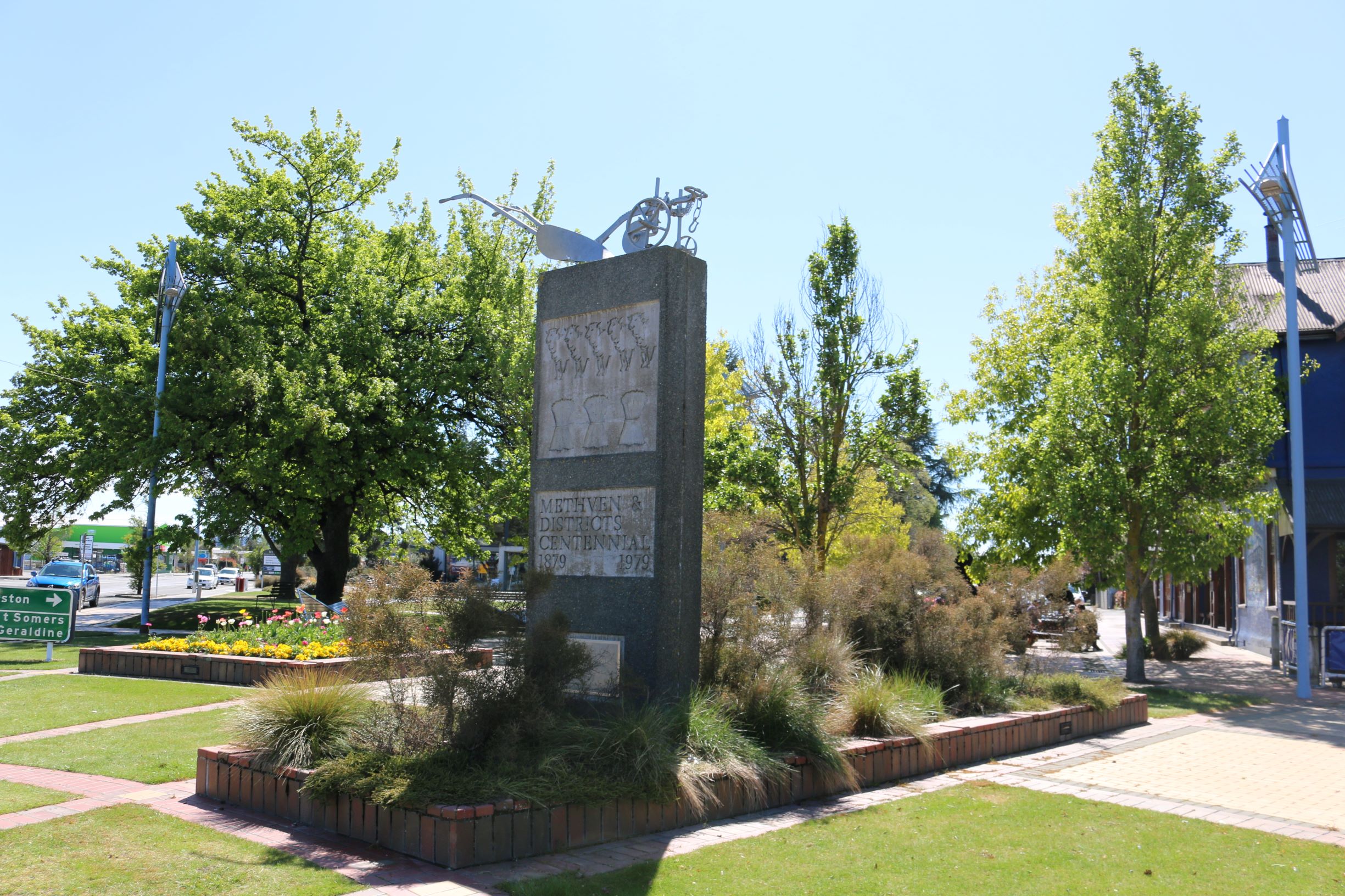 Description: Statue commemorating the centennial of Methven and Districts (1879-1979)
