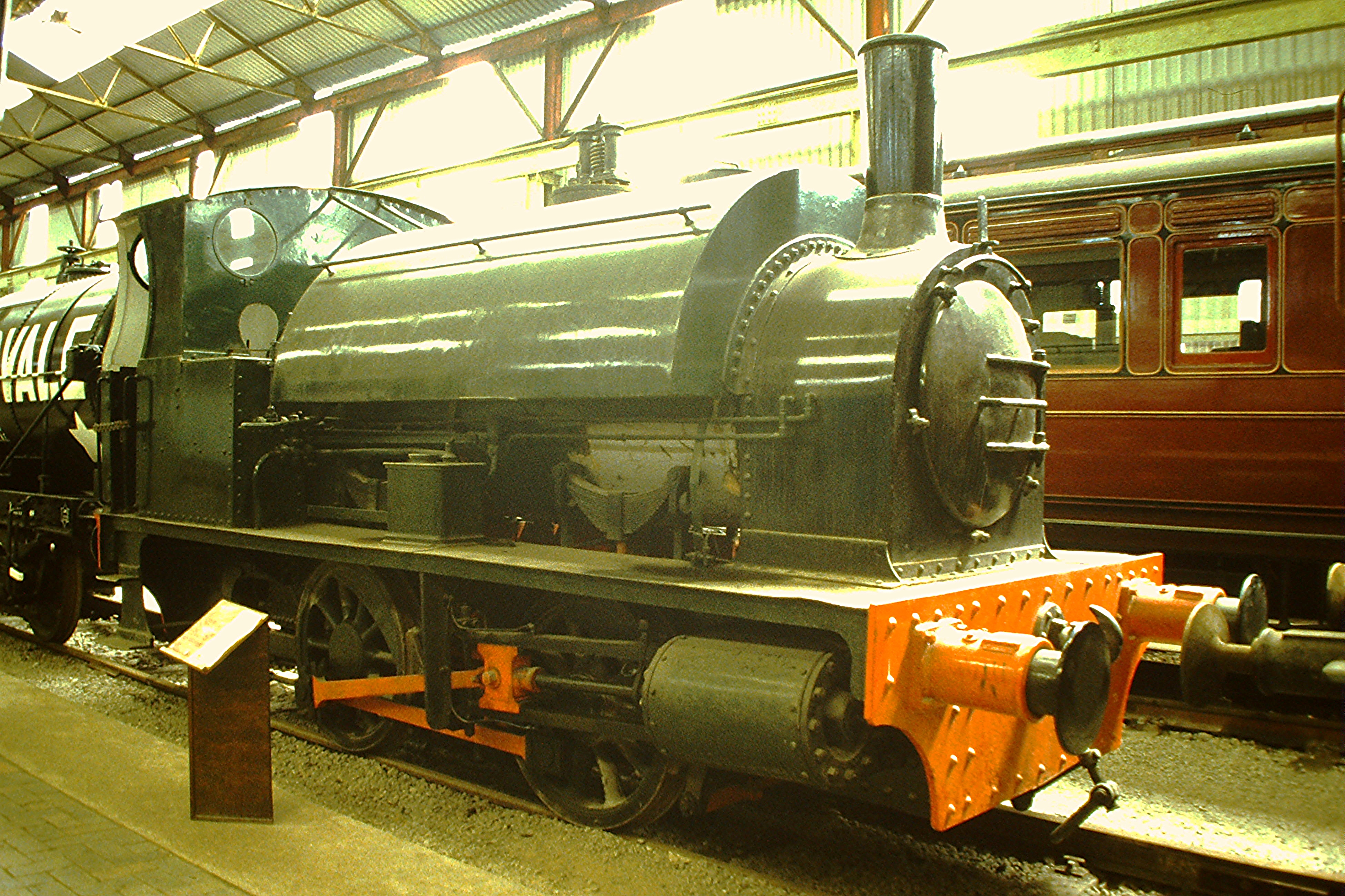 Description: Markham 0-4-0ST No.109 of 1894, Staveley Coal & Iron Co. "Gladys", with whom she worked until 1965. She is the sole surviving Markham loco, at the Midland Railway Centre, Butterley, 06/98. Scanned slide taken with a Canon AE-1 Program.