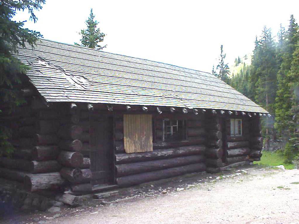 Description: Side of the Milner Pass Road Camp Mess Hall and House, located on Milner Pass Road north of Grand Lake in the Grand County portion of Rocky Mountain National Park in the U.S. state of Colorado. Built in 1926, it is listed on the National Register of Historic Places.