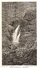 Description: Image from :Henry E. Colton Mountain Scenery. The Scenery of the Mountains of Western North Carolina and Northwestern South Carolina. Raleigh, N.C.:: W.L. Pomeroy. Philadelphia: Hayes & Zell, 1859. Herline & Hensel Lith. Philad. Hayes & Zell Publishers Philad. MITCHELL'S FALLS. (Page 32)
