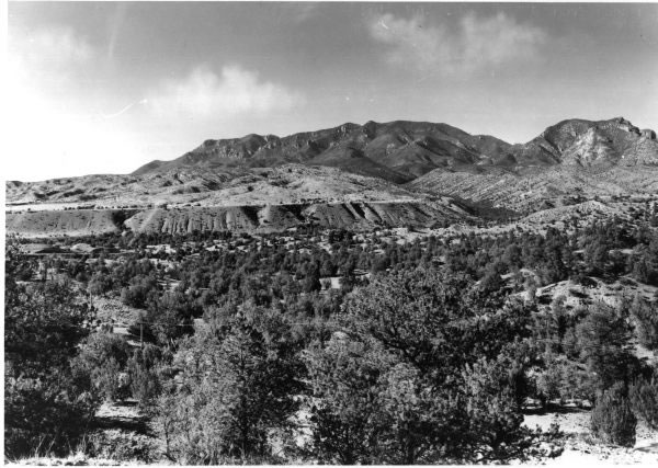 Description: [Photo] 1939—Holt Mountain with Sheridan Mountain in the foreground. 1939—Holt Mountain with Sheridan Mountain in the foreground. This is a view of the Mogollon Range as seen from Highway 260 (later numbered 180). Photo by W. H. Shaffer FS #383788
