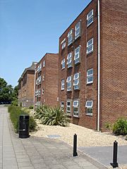 Description: A photograph of the Montefiore House halls of residence for Southampton University, Southampton, UK. The building in the photograph is Block F, part of Montefiore 2.