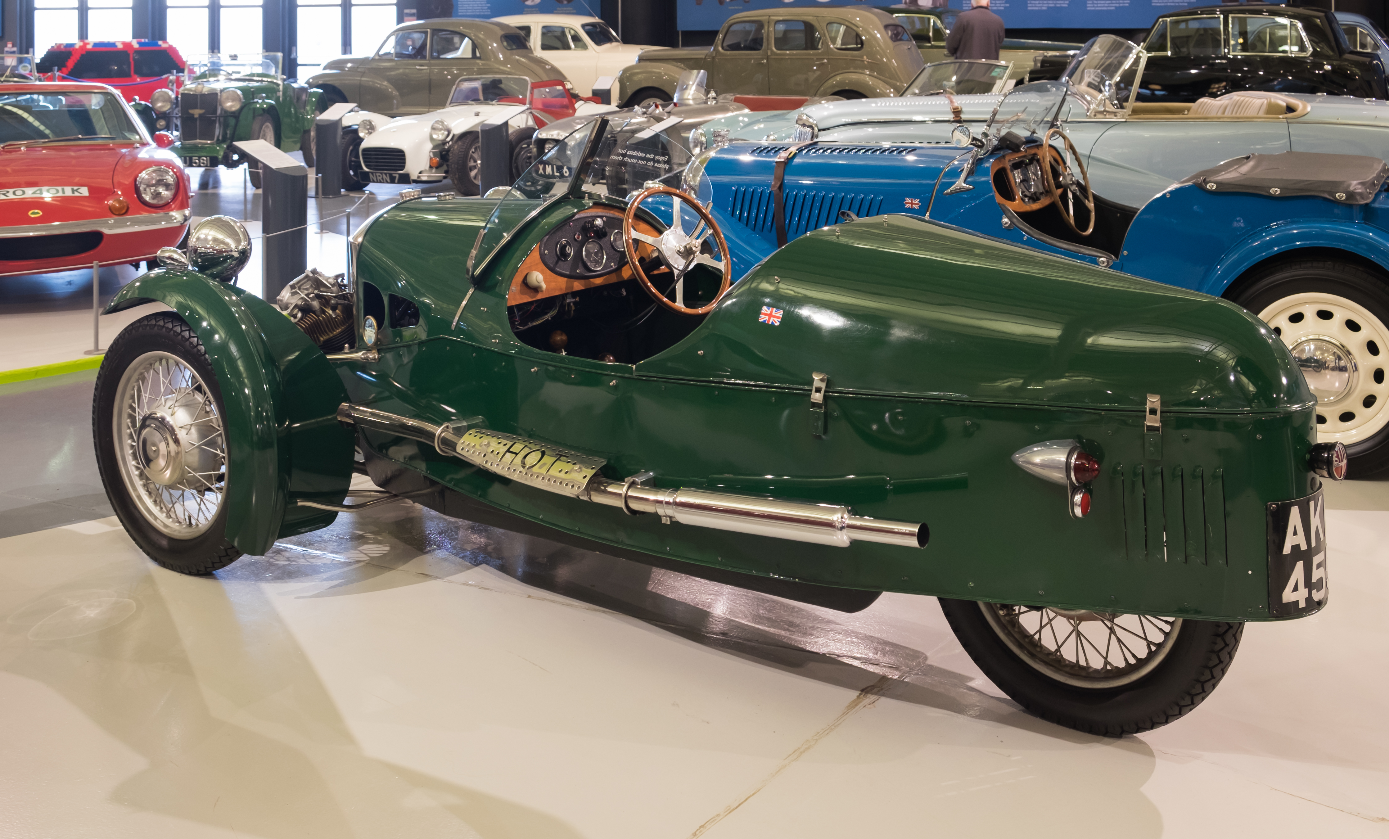Description: A 1935 Morgan Super Sports. This car, with registration mark AKD 455, is now kept at the British Motor Museum, Gaydon, UK.