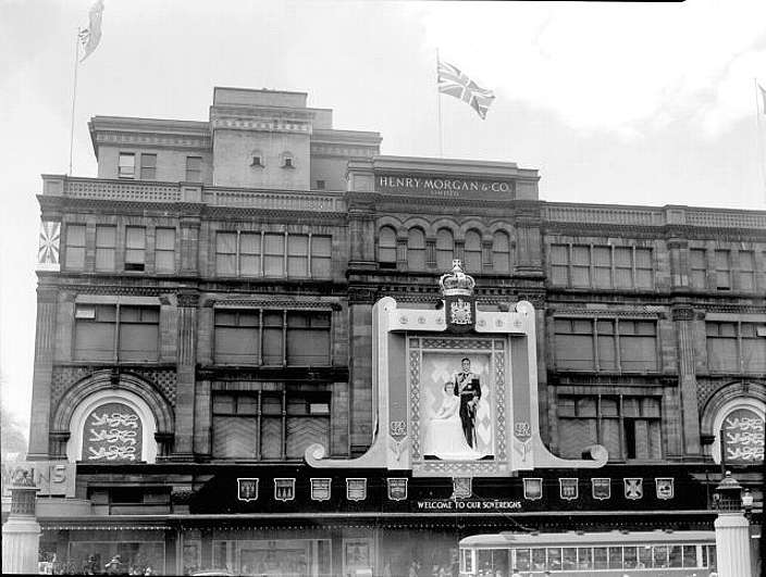Description: Morgan's department store decorated for the 1939 Royal Tour. Montreal, Canada