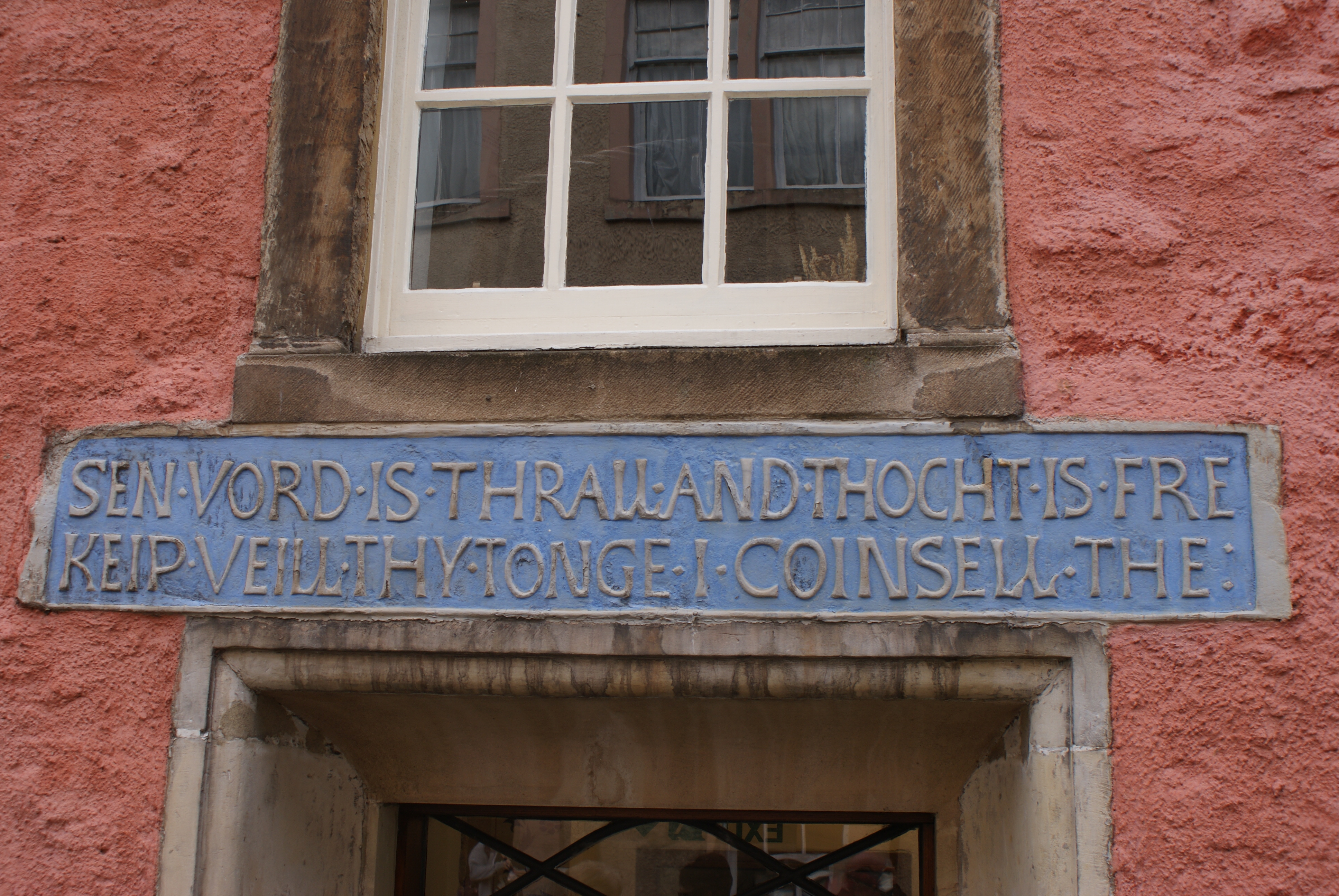 Image: Motto 'Sen Vord Is Thrall' on Abbot House Dunfermline