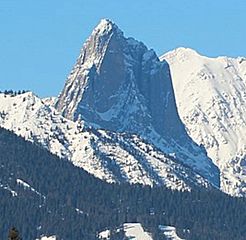 Description: Mount Louis seen from Johnson Lake in Alberta Canada. Cockscomb Mountain behind to right.