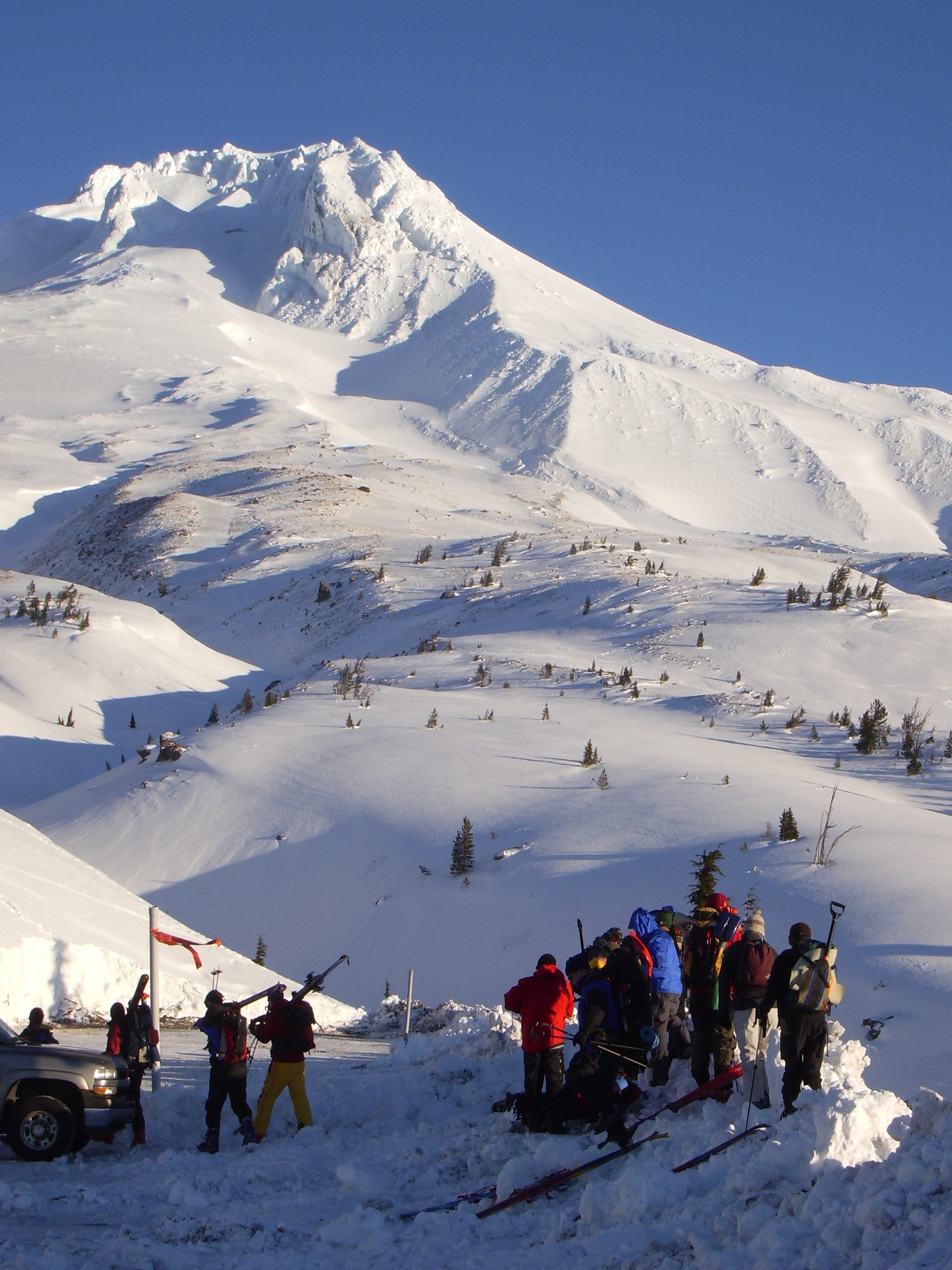 Description: A search and rescue team deploys from Timberline Lodge to search for three missing climbers Sunday, December 172006—the second of five days of good searching weather. More than 88 searchers scoured Mount Hood this day; a few hours later, the body of James Kelly was found near the summit. No sign of the location of other two was found.