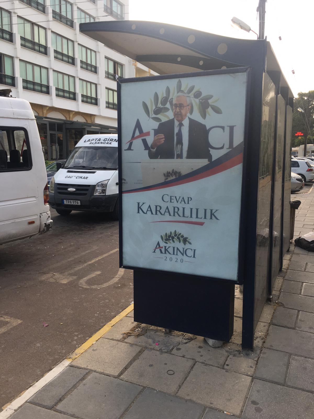 Image: Mustafa Akıncı 2020 ad on bus stop Kyrenia