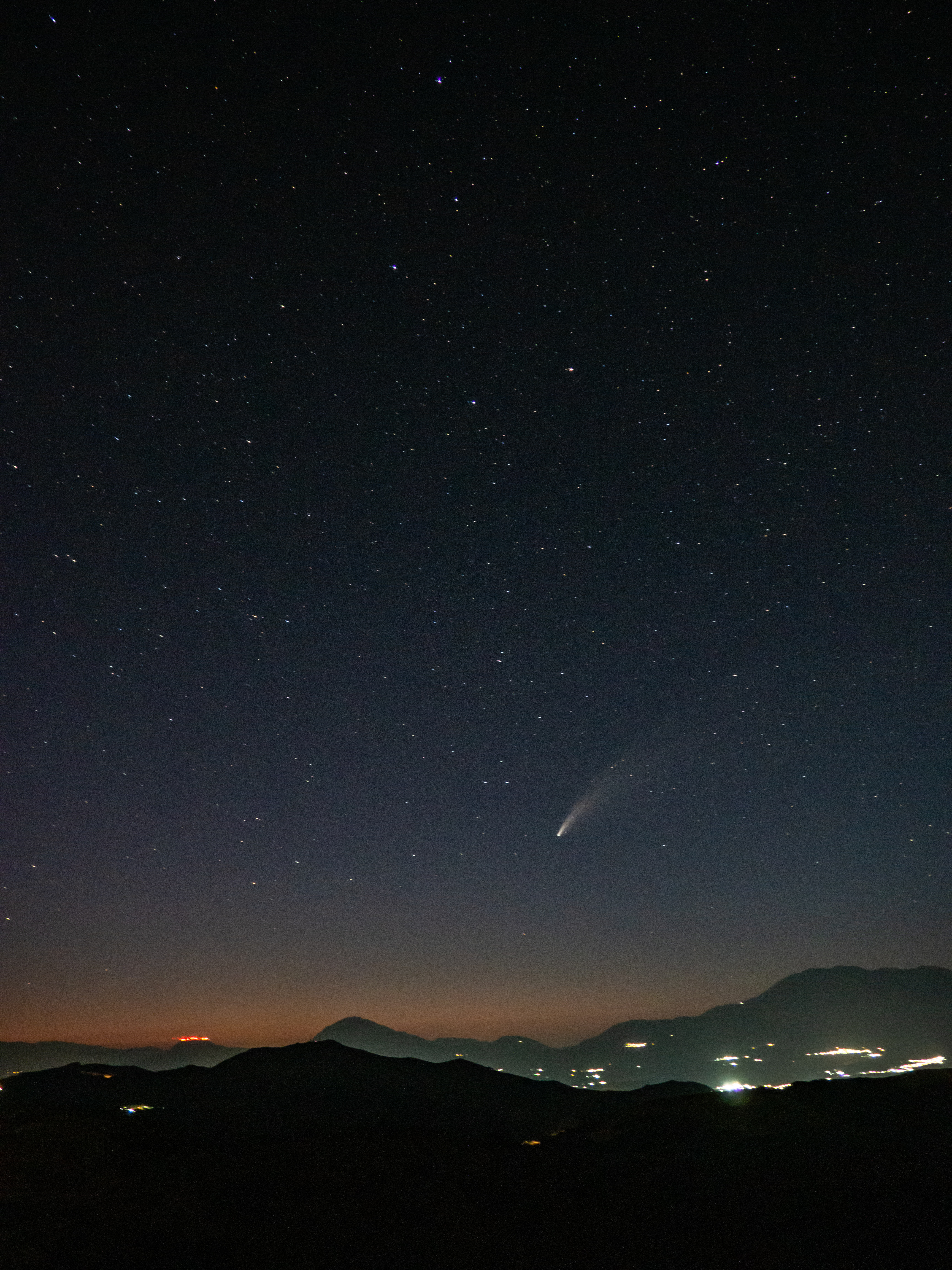 Description: Comet NEOWISE and the Big Dipper on July 17, 2020 as seen from Asterousia, Crete.