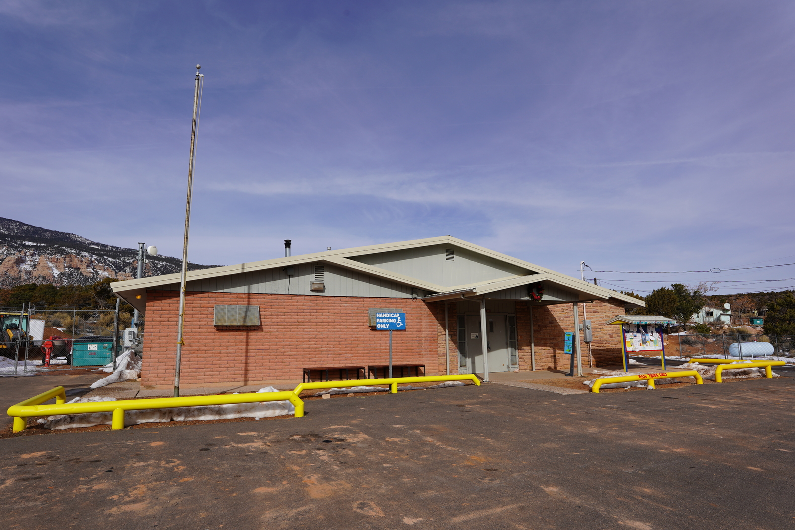 Description: The Chapter House for the Naatsis'áán Chapter. It is the local meeting house in the Naatsis'áán (a.k.a. Navajo Mountain) community for elected representatives of the Navajo Nation government. Photograph taken on 2019-01-20T17:57:57Z.