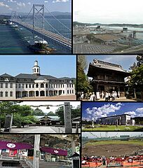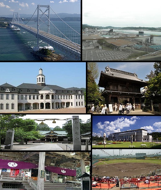 Credit: 1段目左:File:Big Naruto Bridge04n3872.jpg大鳴門橋 by 663highland・1段目右:File:Naruto If racing.jpg鳴門競艇場 by Mti 2段目左:ja:File:ドイツ館.jpg鳴門市立ドイツ館 by 汲平・2段目右:File:Jikuwasan Ryozenji 01.JPG霊山寺 by Reggaeman 3段目左:File:Oasahiko Jinja 08.jpg大麻比古神社 by Reggaeman・3段目右:File:The Otsuka Museum of Art10s3872.jpg大塚国際美術館 by663highland 4段目左:File:Nishozan-gokurakuji-main.JPG極楽寺 by ウランボルグ・4段目右:File:徳島県営鳴門球場.JPG徳島県鳴門総合運動公園野球場 byKamon
