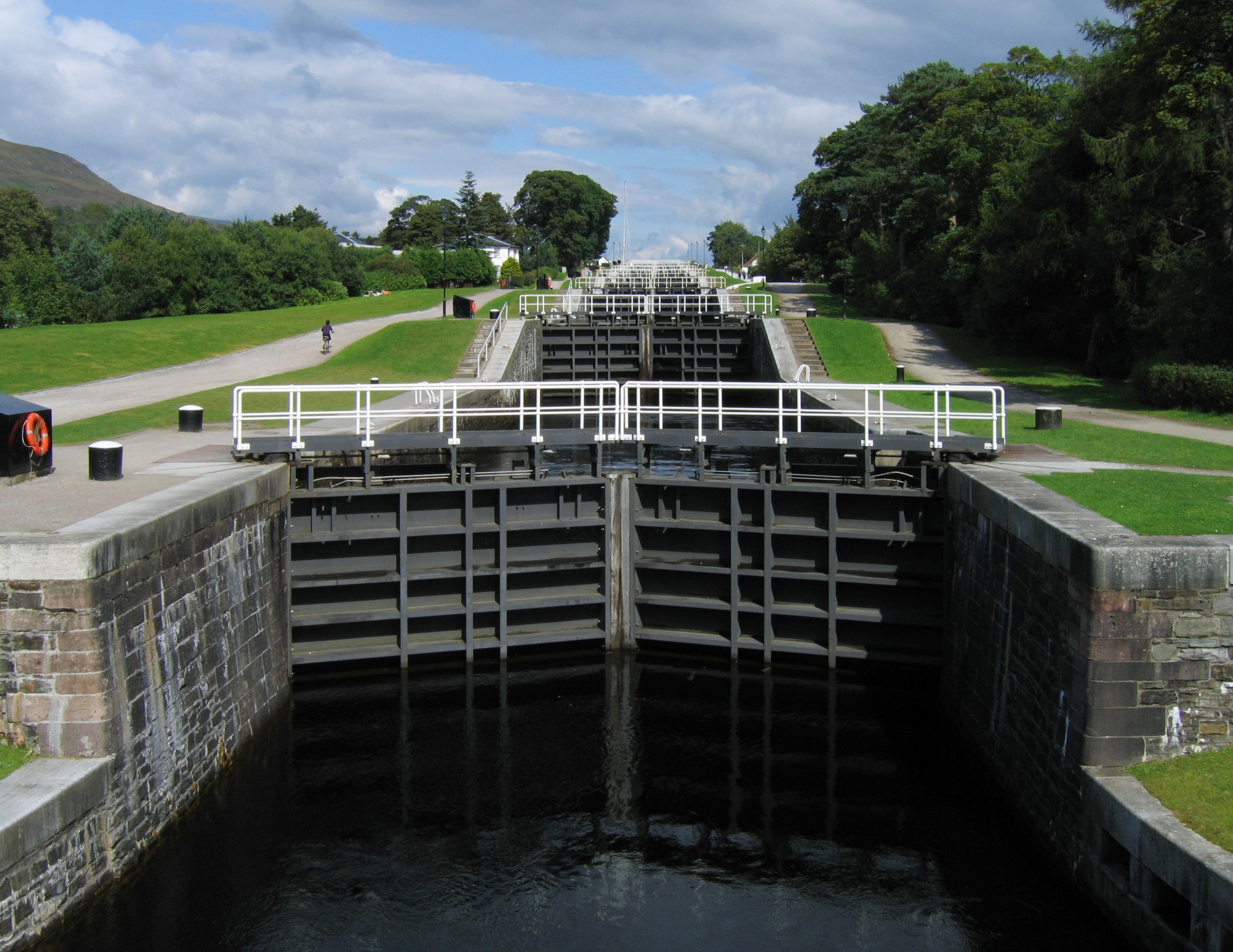 Description: Neptune's Staircase, a staircase lock on the Caledonian Canal in Banavie. Rotated and perspective corrected version.