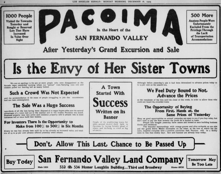 Image: Newspaper ad for Pacoima, California, 1905