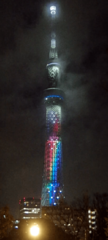 Description: In commemoration of NiziU's official debut, Tokyo Skytree was lit up in rainbow colors.