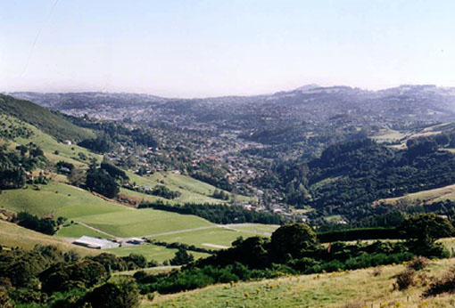 Description: Looking down North East Valley towards Dunedin, New Zealand (photo by James Dignan, March 2005)