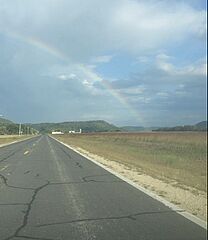 Description: View of a rainbow and surrounding mountains in the Root River valley