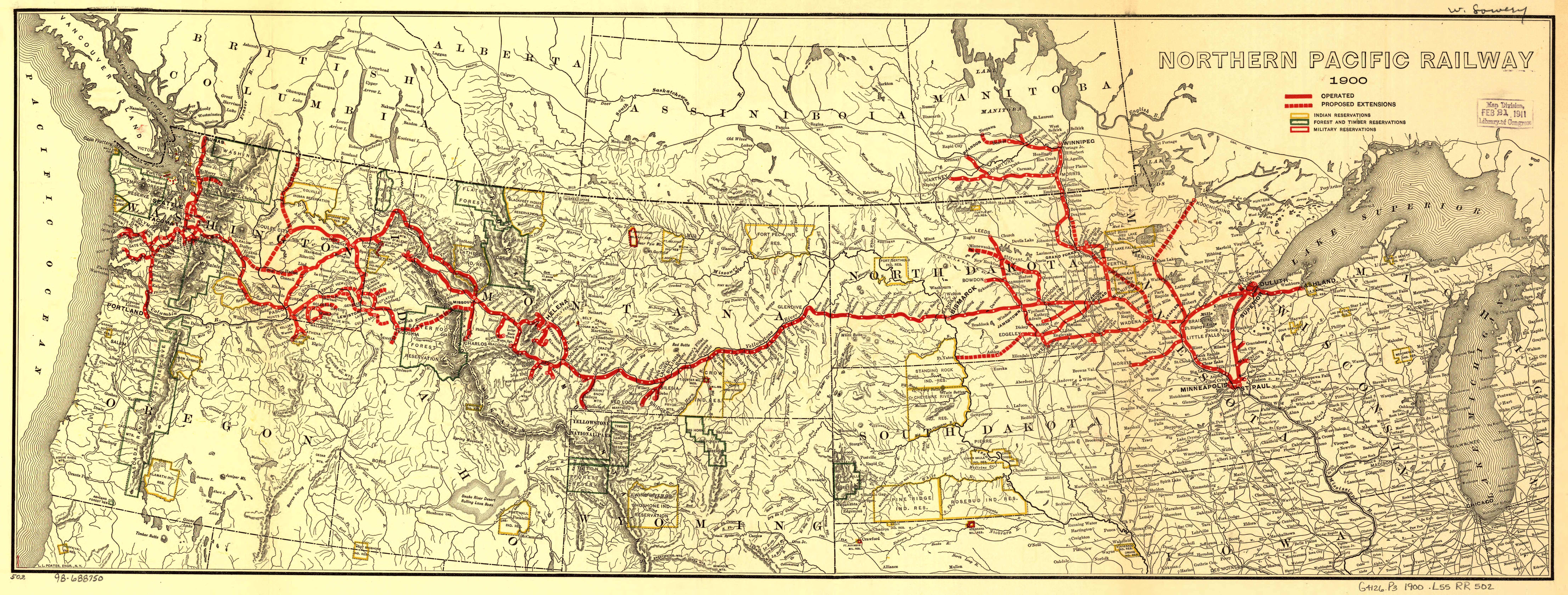 Description: Map showing the en:Northern Pacific Railway route circa 1900.