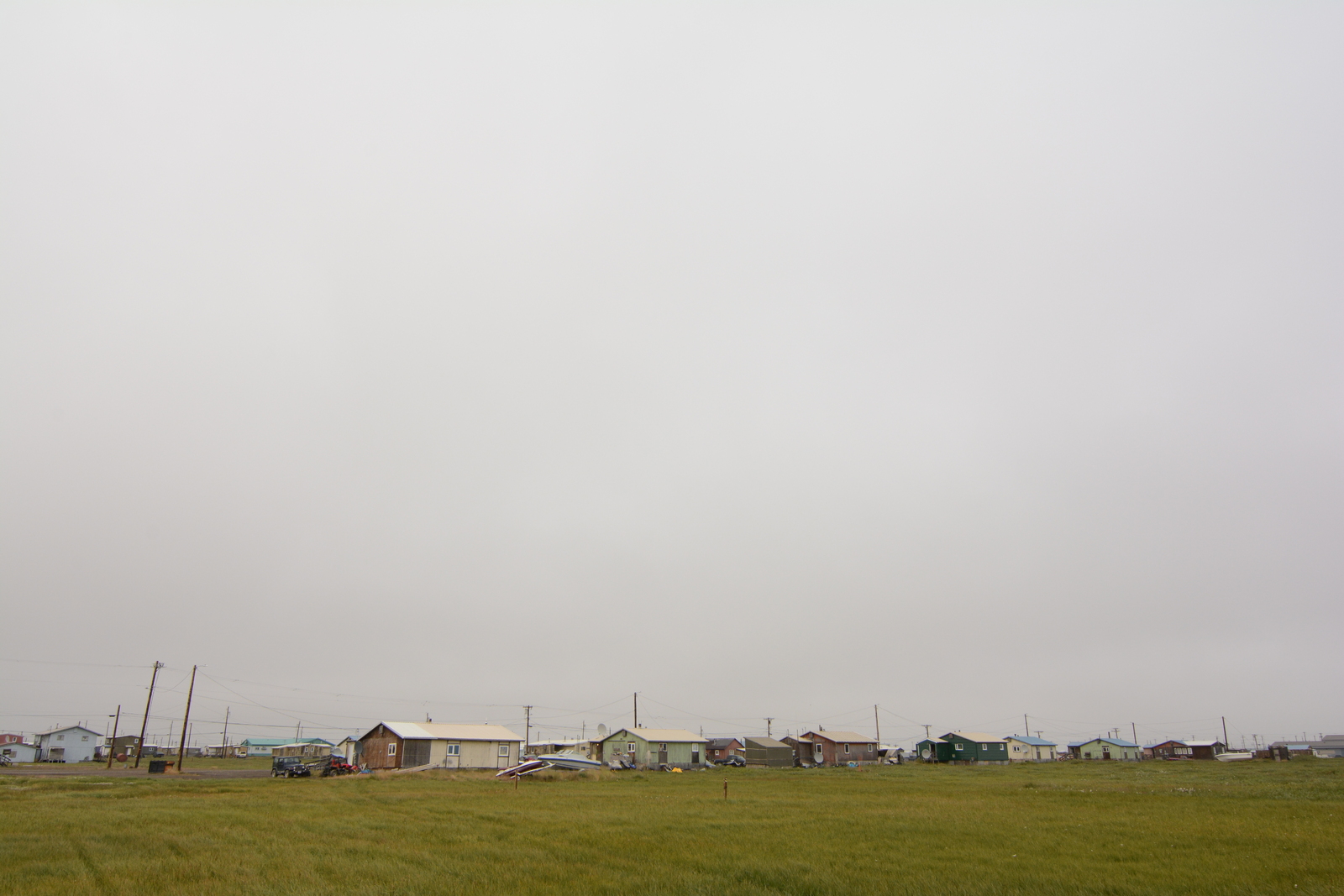 Description: The small village of Nuiqsut, Alaska. The village is only accessible by boat or by air, and has a population in the low thousands. (NOTE: Eh, "low thousands"? There are approximately 400–500 people living there.)