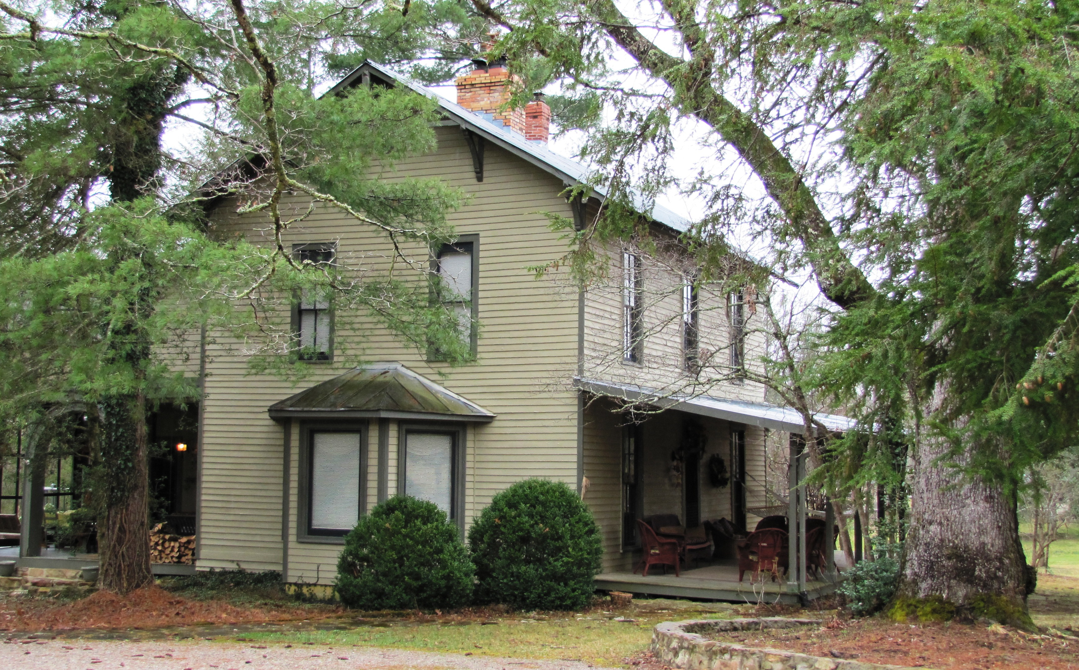 Description: Oak Lodge, built in 1881, in Rugby, Tennessee, USA. This house was initially a boarding house operated by T. Lyon White as overflow lodging for the Tabard Inn, which stood across the road.