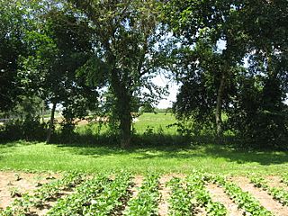 Description: A garden (foreground) and fields (background) on the western side of Oldtown, an unincorporated community in Xenia Township, Greene County, Ohio, United States. The fields are part of the Old Chillicothe Site, where a Shawnee village once lay; here Simon Kenton ran the gauntlet. Today, it is recognized as a potential archaeological site and is listed on the National Register of Historic Places.