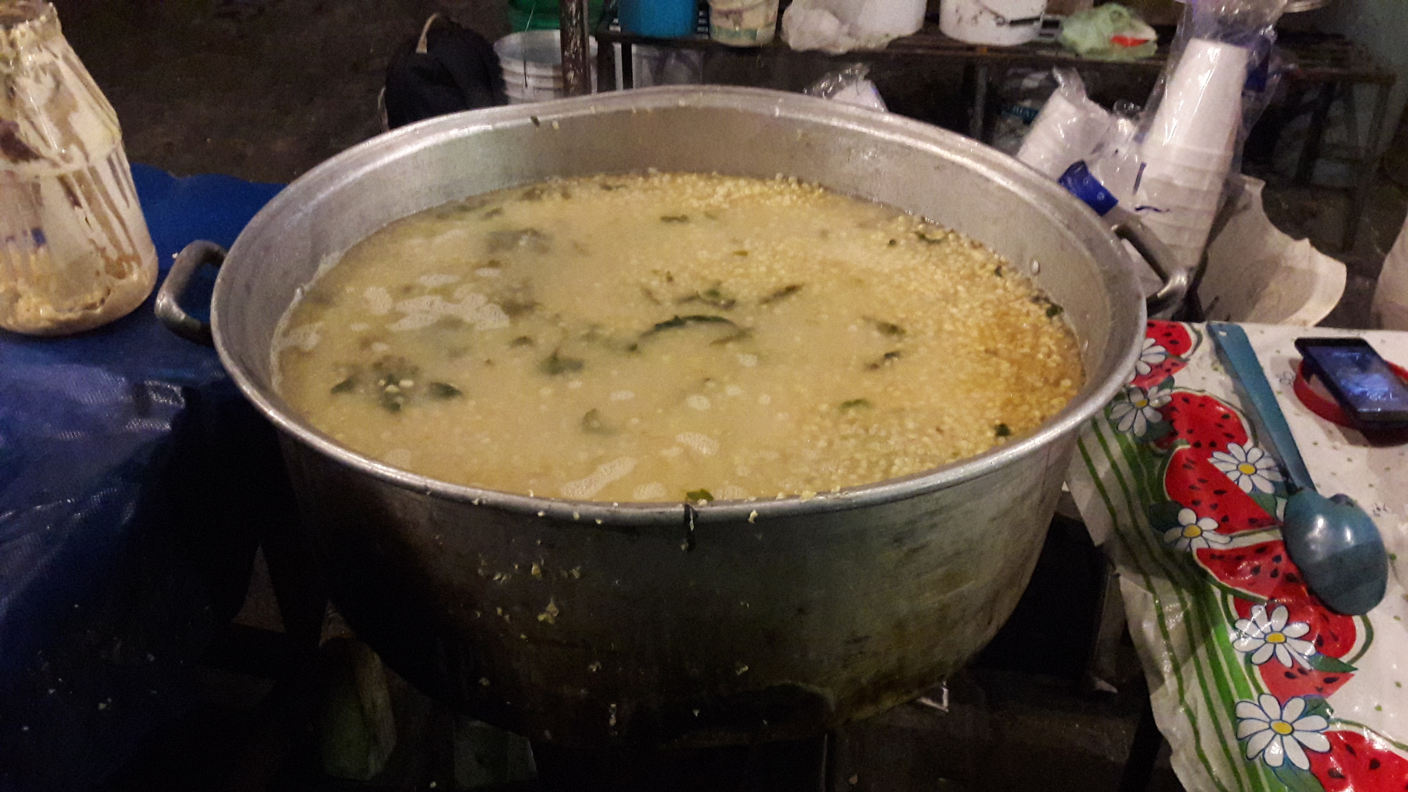 Description: Olla con esquites en los Esquites de la vía, Puebla