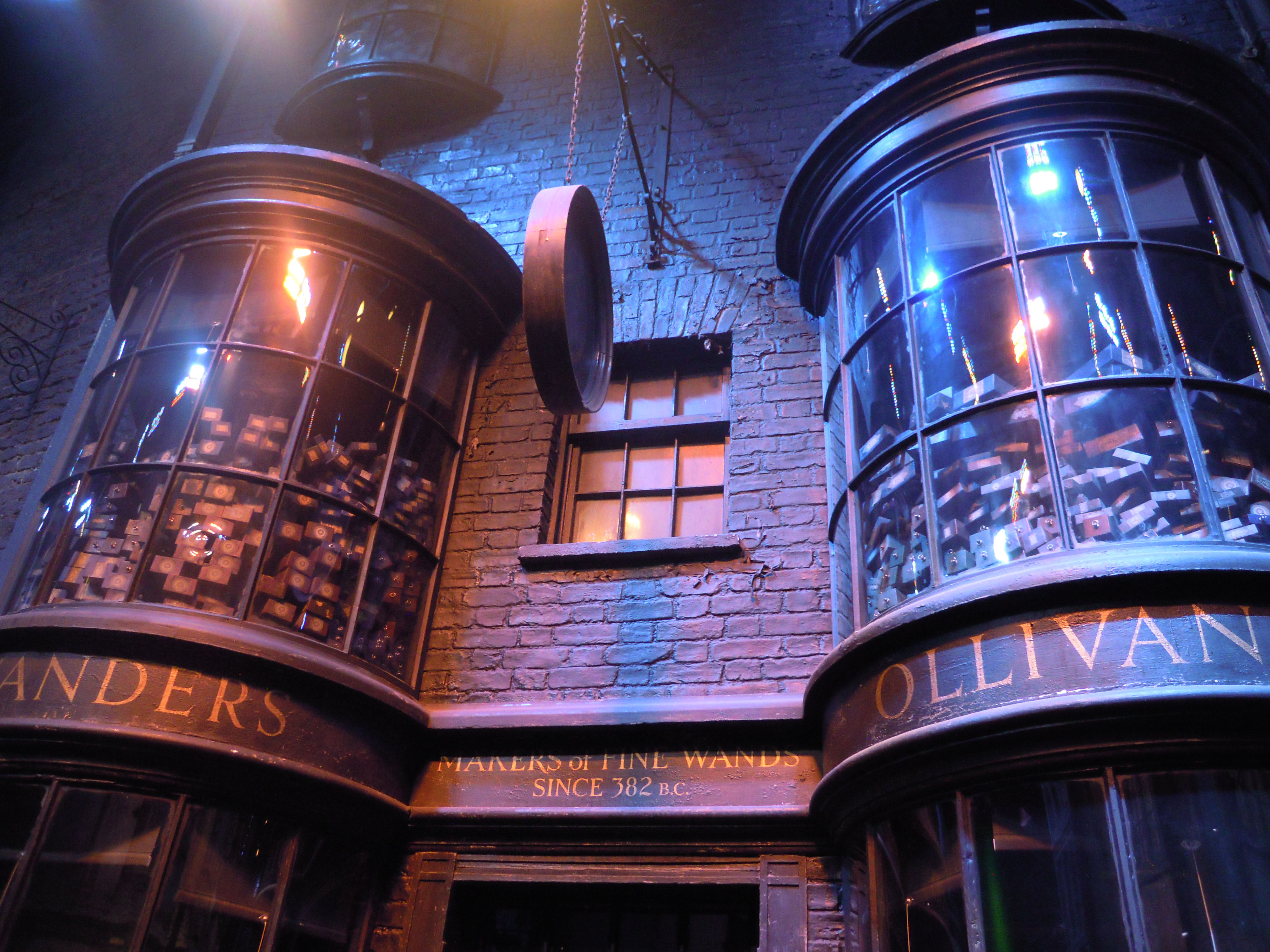 Description: Ollivanders Wand Shop, Diagon Alley. Harry Potter film set at Warner Bros. Studios, Leavesden, UK