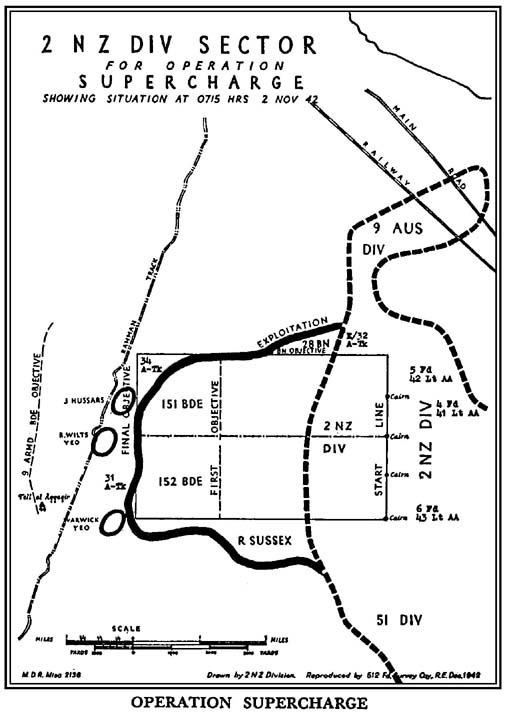 Description: Operation Supercharge- Dispositions of the 2nd New Zealand Division at the end of the operation.