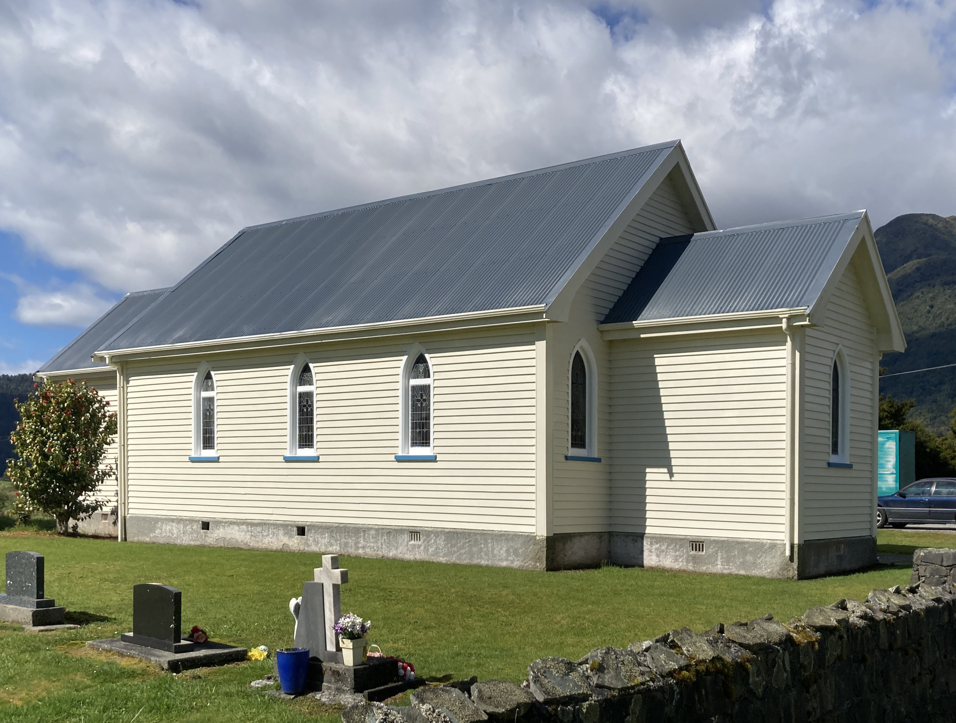 Description: Our Lady of the Snows catholic church, Fox Glacier township, New Zealand