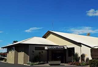 Description: The south-west entrance to the Parkhurst Tavern, a local tavern in the suburb of Parkhurst in the regional Australian city of Rockhampton, Queensland.