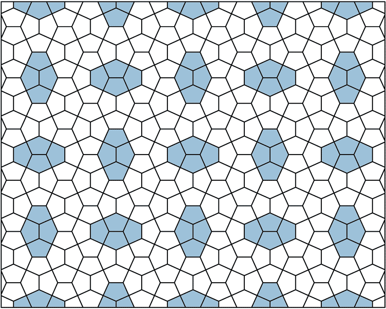Description: Planar tessellation by a single pentagonal prototile (type 4) with overlays of semiregular hexagons (each comprised of 4 pentagons).