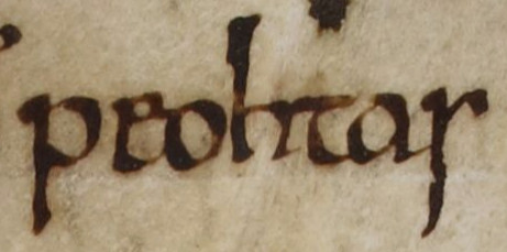 Description: An excerpt from folio 124r of British Library Cotton MS Tiberius B I (the "C" version of the Anglo-Saxon Chronicle. A transcription of this excerpt appears on page 43 of: O'Keeffe, KO, ed. (2001). The Anglo-Saxon Chronicle: A Collaborative Edition. Vol. 5, MS C. Cambridge: D.S. Brewer. ISBN 0 85991 491 7. The transcription reads: "Peohtas".