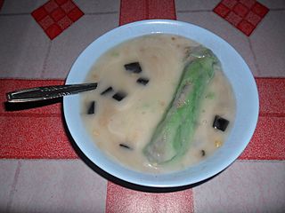 Description: Pisang ijo, makanan khas Sulawesi Selatan.