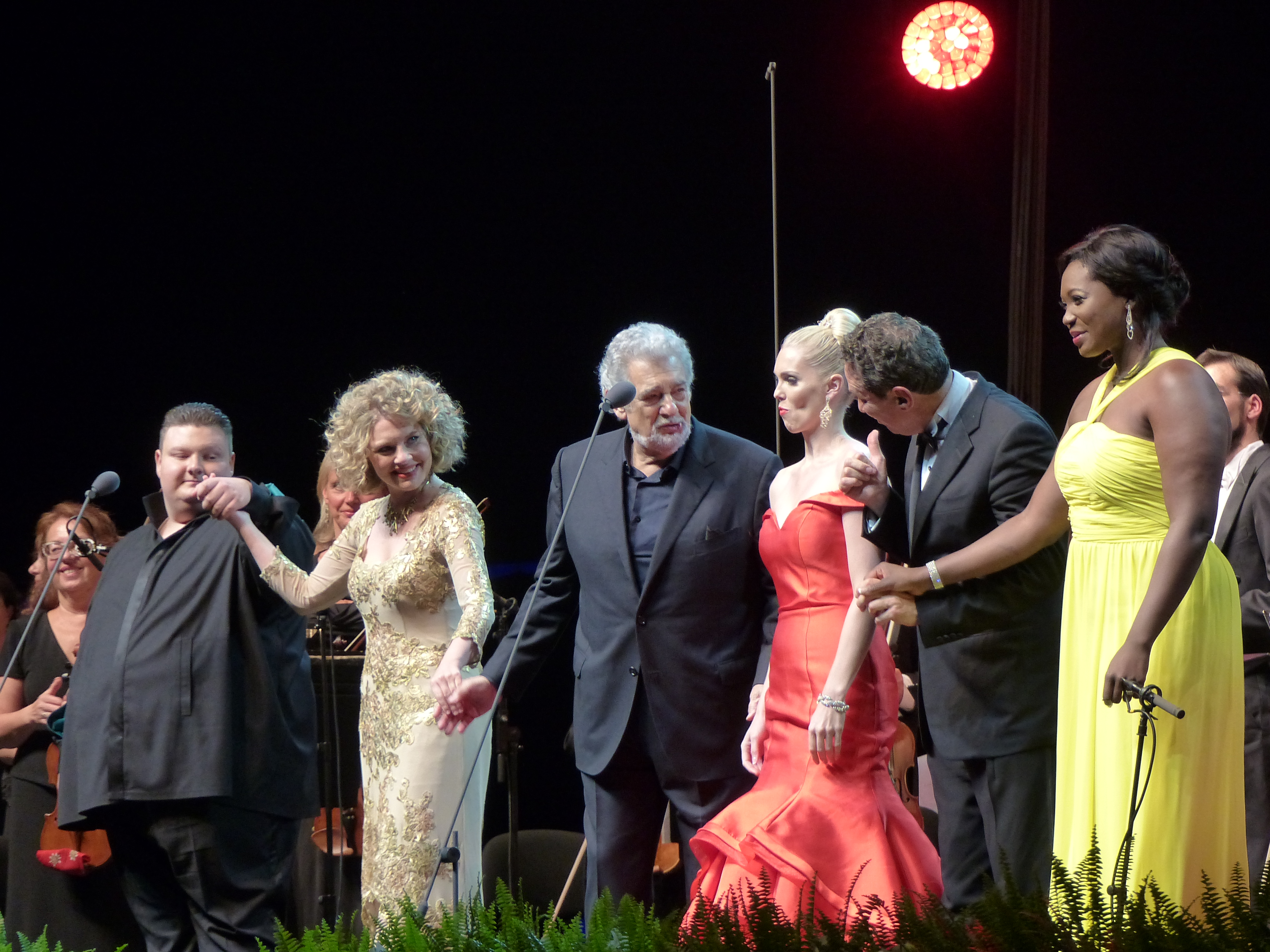Description: Plácido Domingo, Pasztircsák Polina, Angel Blue, Micaëla Oeste, Váradi Gyula, Eugene Kohn, . Taken on the 10th of August, 2016. Papp László Budapest Aréna, Budapest. Venue in hu.