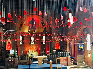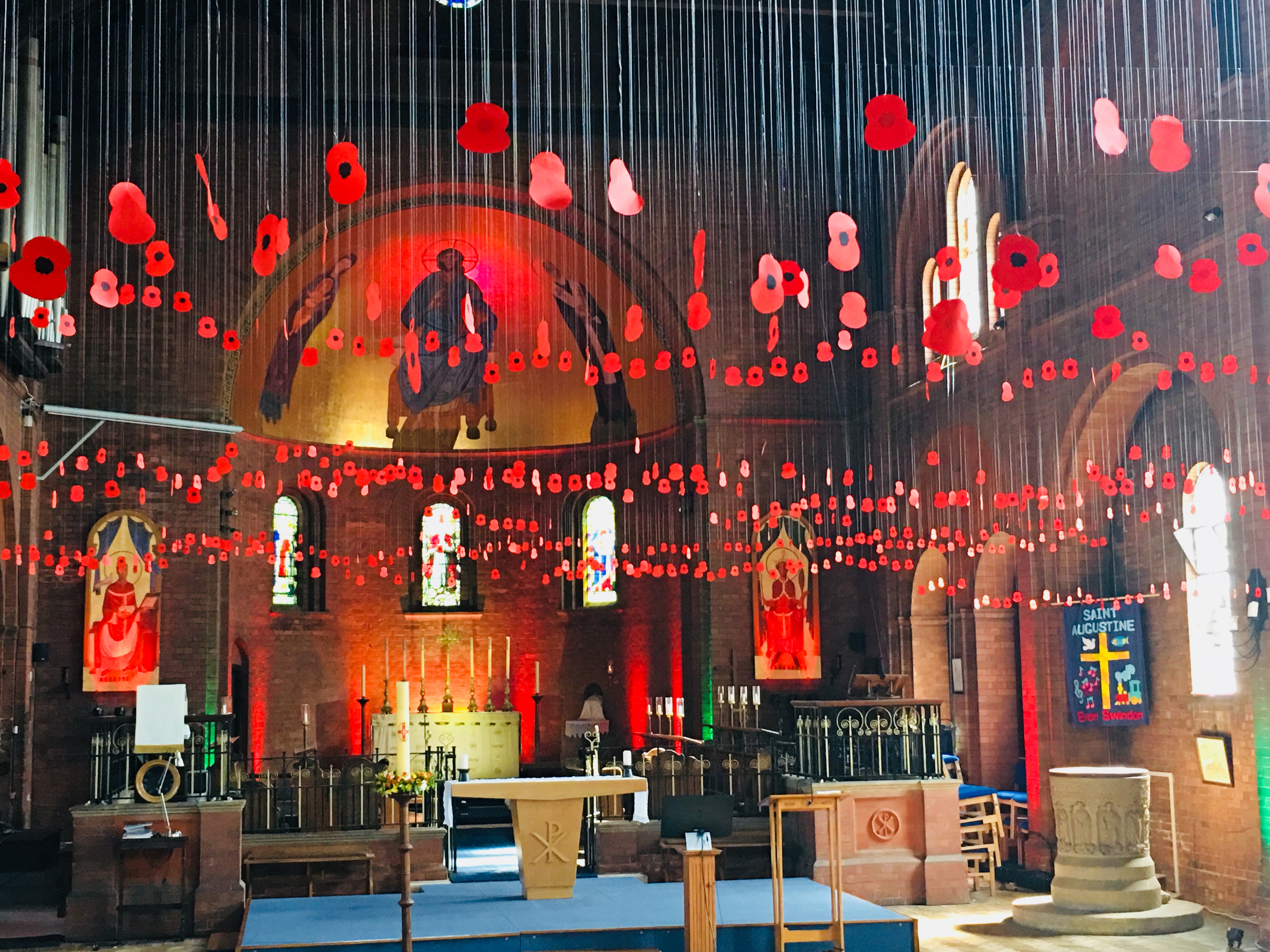 Description: Poppies hanging through the church to commemorate the 100th anniversary of the end of WW1