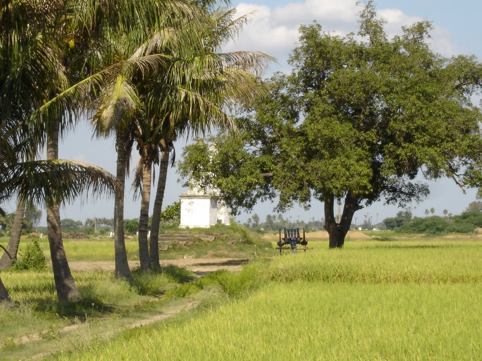 Description: Location of Pullalur obelisks situated amidst paddy fields and coconut grove
