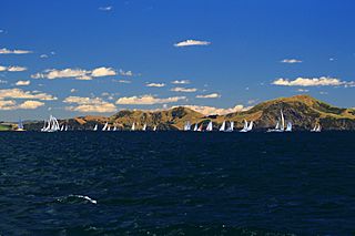 Description: A yacht race in progress with the Purerua Peninsula in the background
