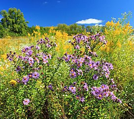 Description: Symphyotrichum novae-angliae and goldenrod in a meadow at State Game Land 252, Lycoming County–Union County line. I've licensed this photo as Creative Commons Zero (CC0) for release into the public domain. You're welcome to download the photo and use it without attribution.