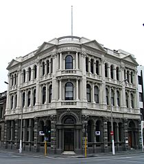 Description: Queens Gardens Court / New Zealand Insurance Co. building, corner 49-51 Queens Gardens and 3-5 Crawford Street, Dunedin, New Zealand. New Zealand Historic Places Trust Register number: 4375.