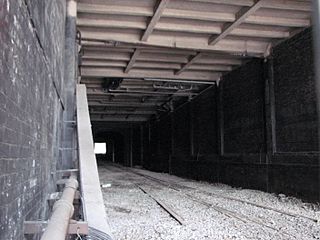 Description: Railway Square road overbridge showing the north-western end of tunnel under the road. The overbridge is listed on the New south Wales State Heritage Register