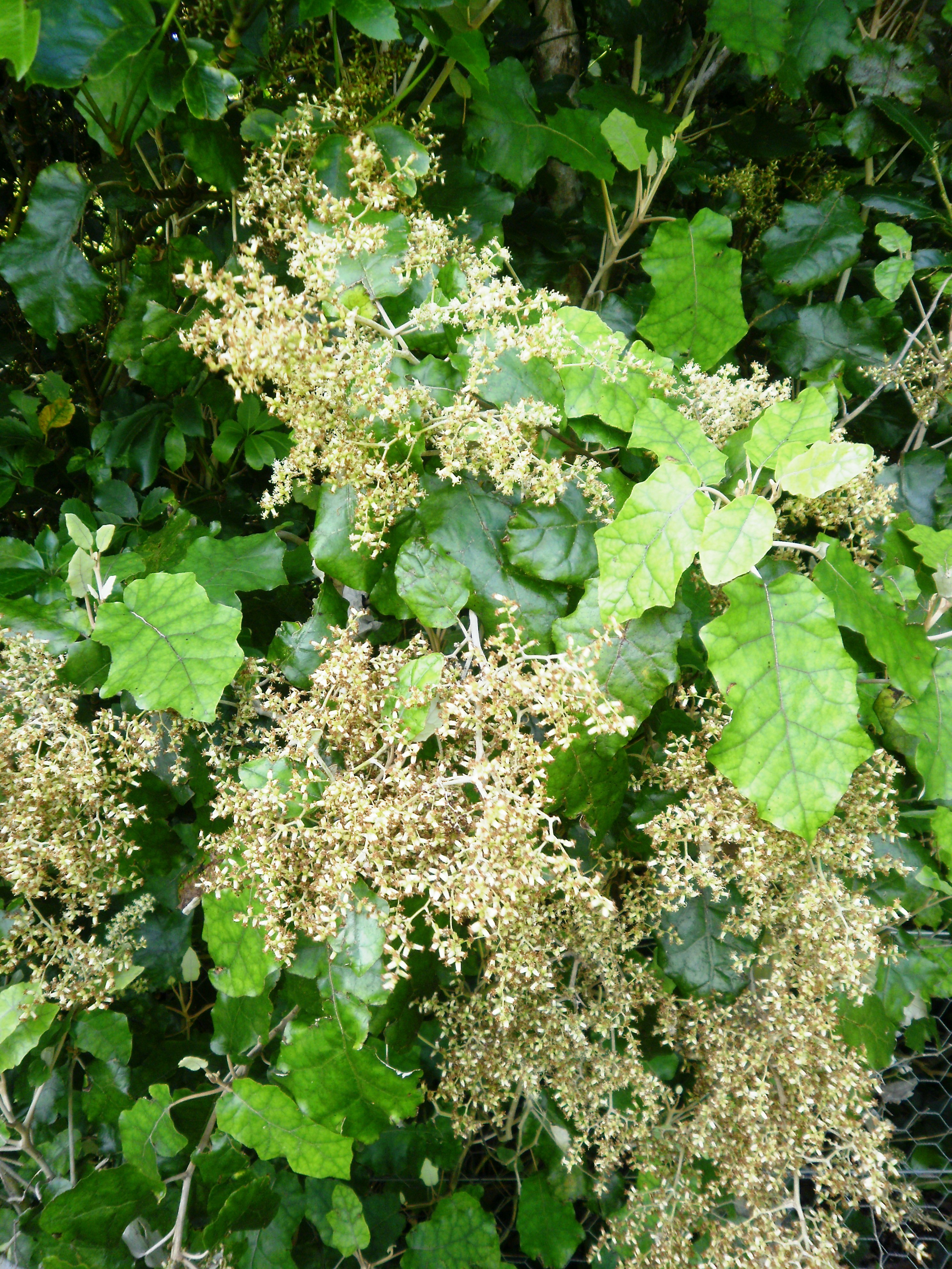 Description: Rangiora (Brachyglottis repanda) plant in flower, native shrub/tree of New Zealand.